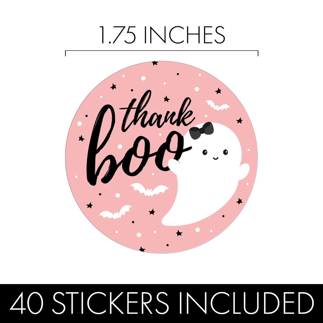 These Pink Little Boo "Thank Boo" Baby Shower Stickers are a sweet and spooky way to thank your guests! Perfect for an It's a Ghoul Halloween-themed baby shower, these charming stickers add a magical touch to favor bags, gifts, and more.