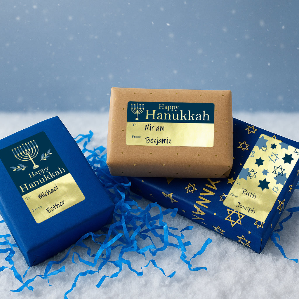 Celebrate the Festival of Lights with style and simplicity using these Hanukkah Gift Tag Stickers, the perfect finishing touch for every thoughtful gift.