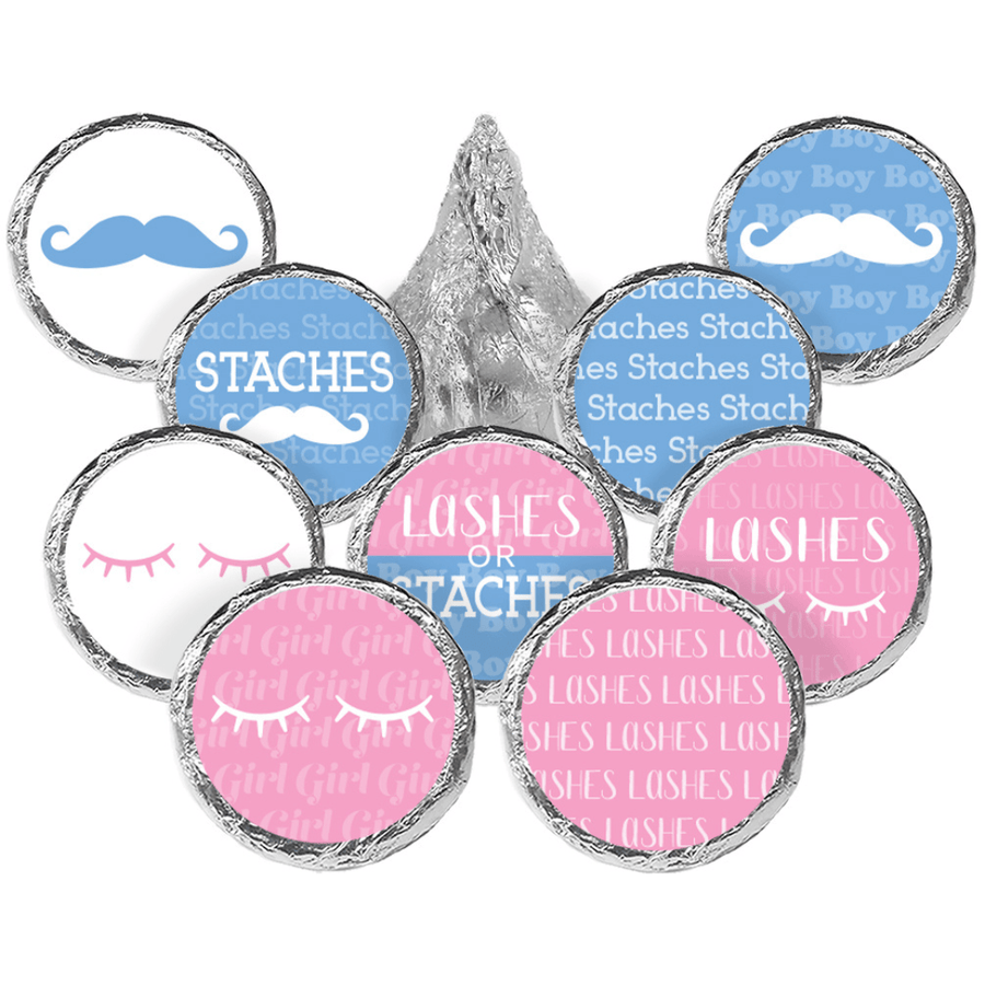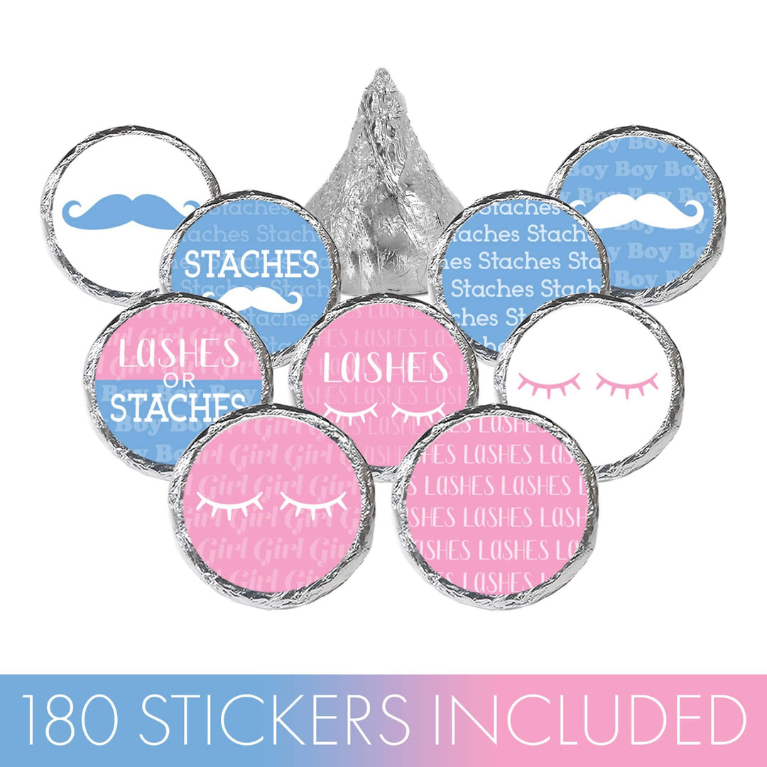 Estos pestañas o bigotes fiesta de revelación de género Las pegatinas de regalo son el toque final perfecto. para revelar el género de tu bebé.