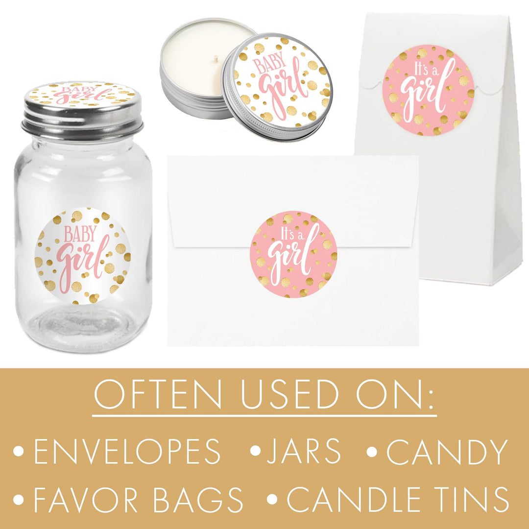 Estas pegatinas rosas y doradas para baby shower "It's a Girl" y "Baby Girl" serán el complemento perfecto para la decoración de tu fiesta. Fabricadas con materiales de alta calidad, estas pegatinas duraderas son fáciles de usar: simplemente pélelas y péguelas en los obsequios de su fiesta, lo que le ahorrará tiempo y esfuerzo e impresionará a sus invitados con sus colores vibrantes.