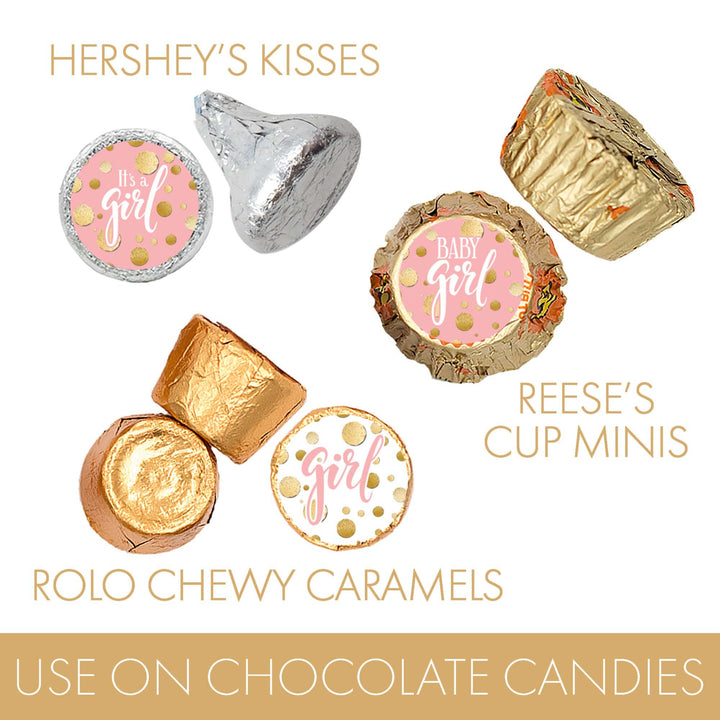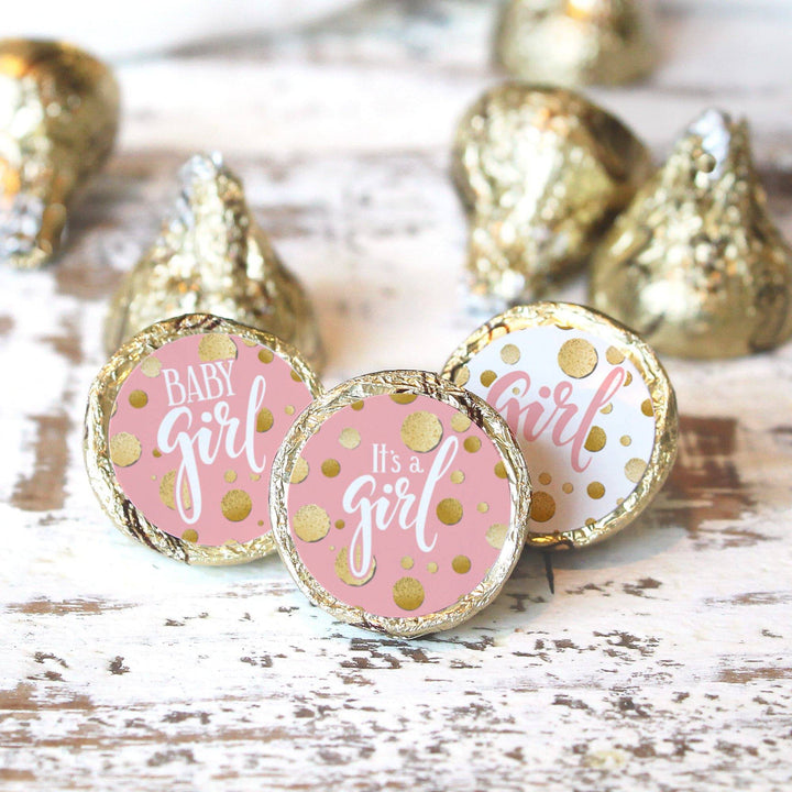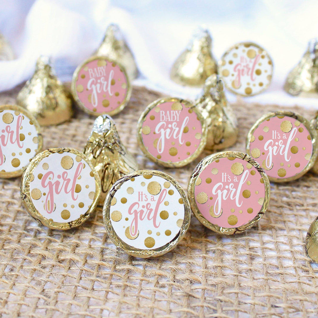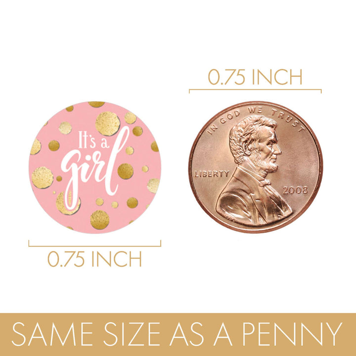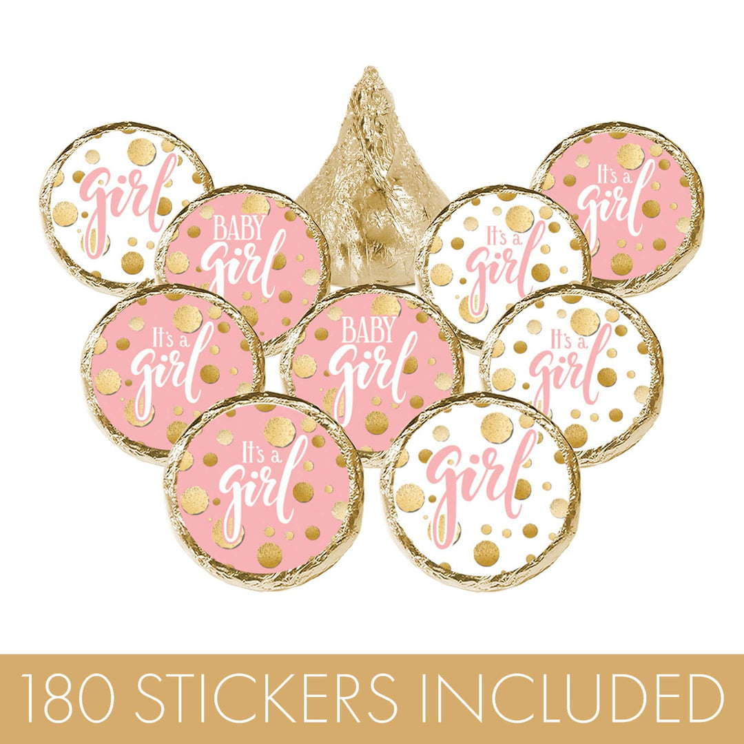 Estas elegantes pegatinas rosas y doradas para baby shower son el detalle final perfecto para agregar a tu próximo baby shower para niñas.
