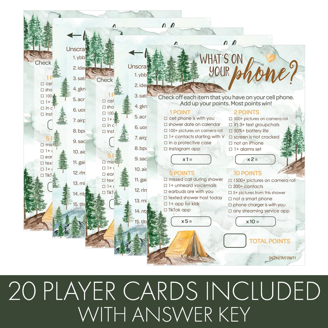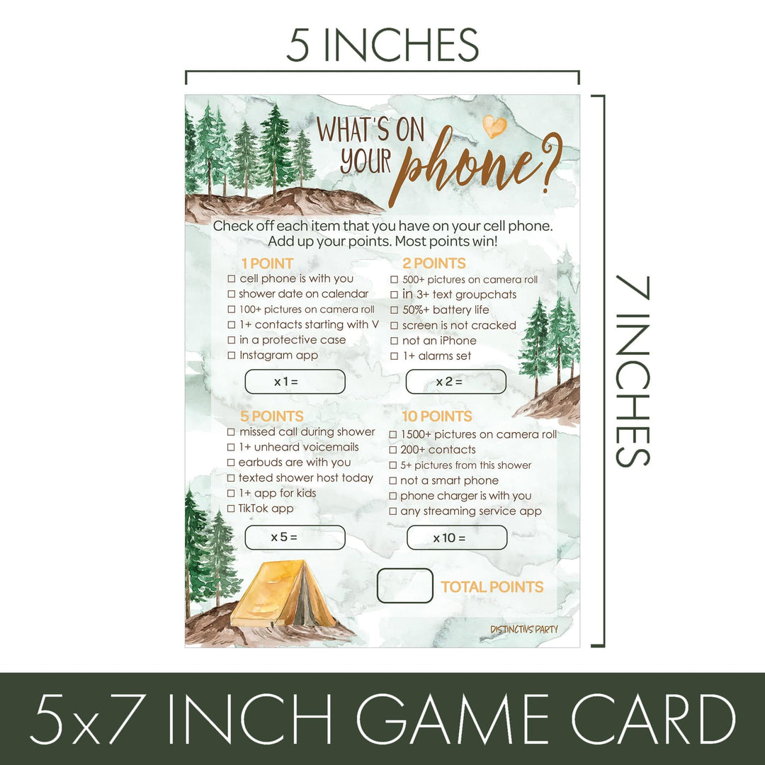 ¡Eleva la emoción de tu baby shower con nuestros juegos de Baby Shower Little Adventurer ! Este paquete incluye 20 cartas de juego de alta calidad de doble cara . Con nuestras tarjetas de alta calidad y fáciles de escribir, las risas y la competencia amistosa pueden continuar y seguir. Estos juegos añaden un toque de alegría y un toque de desafío a tu baby shower temático de acampada, senderismo u otras actividades al aire libre, ¡garantizando que sea un evento inolvidable para todos!
