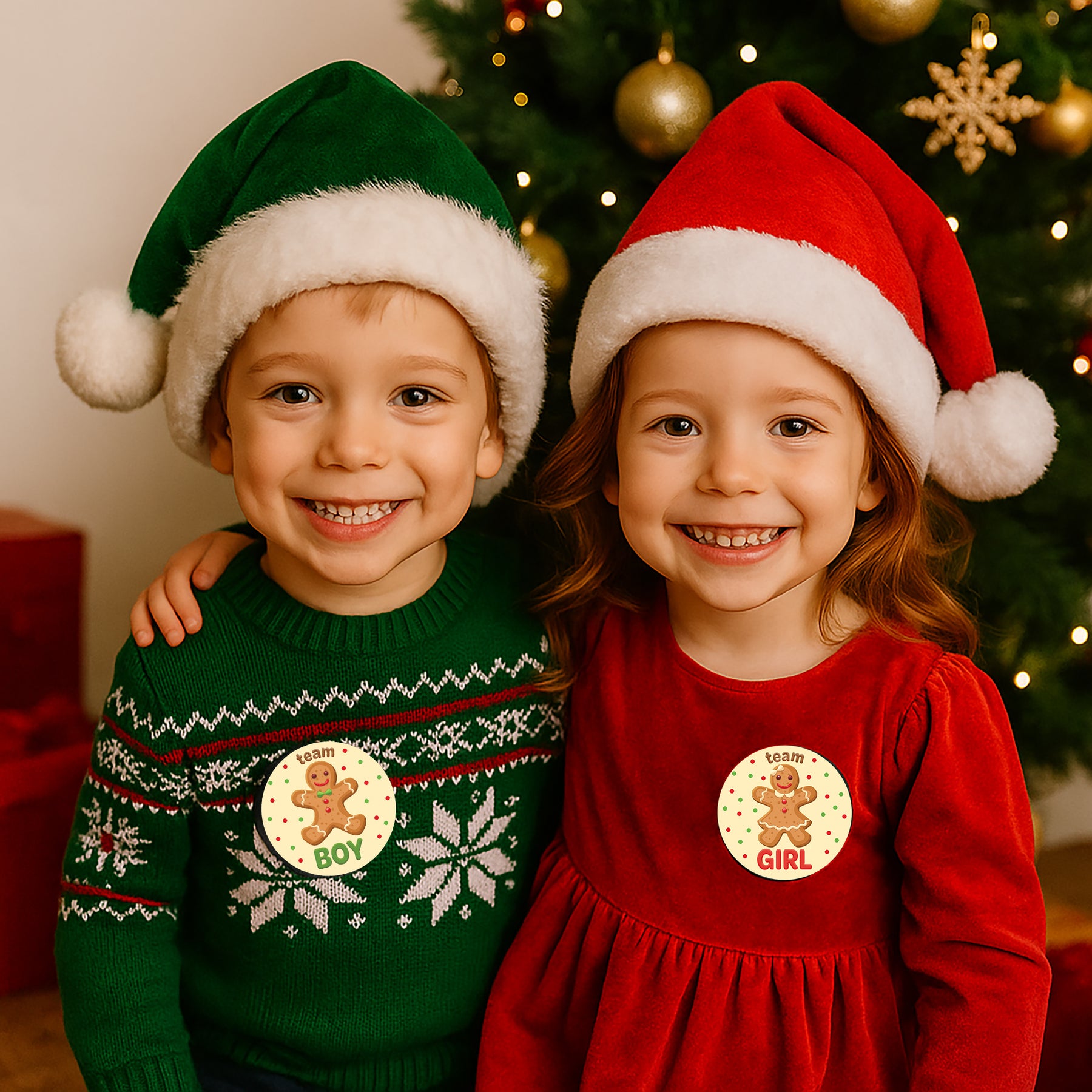 Añade estas pegatinas de revelación de género de pan de jengibre navideño Oh Snap, What's Baking a tus suministros y decoraciones navideñas de revelación de género y deja que los invitados voten por Team He o Team She. Es el juego de adivinanzas perfecto para él o ella para cualquier revelación de género en las vacaciones de invierno.