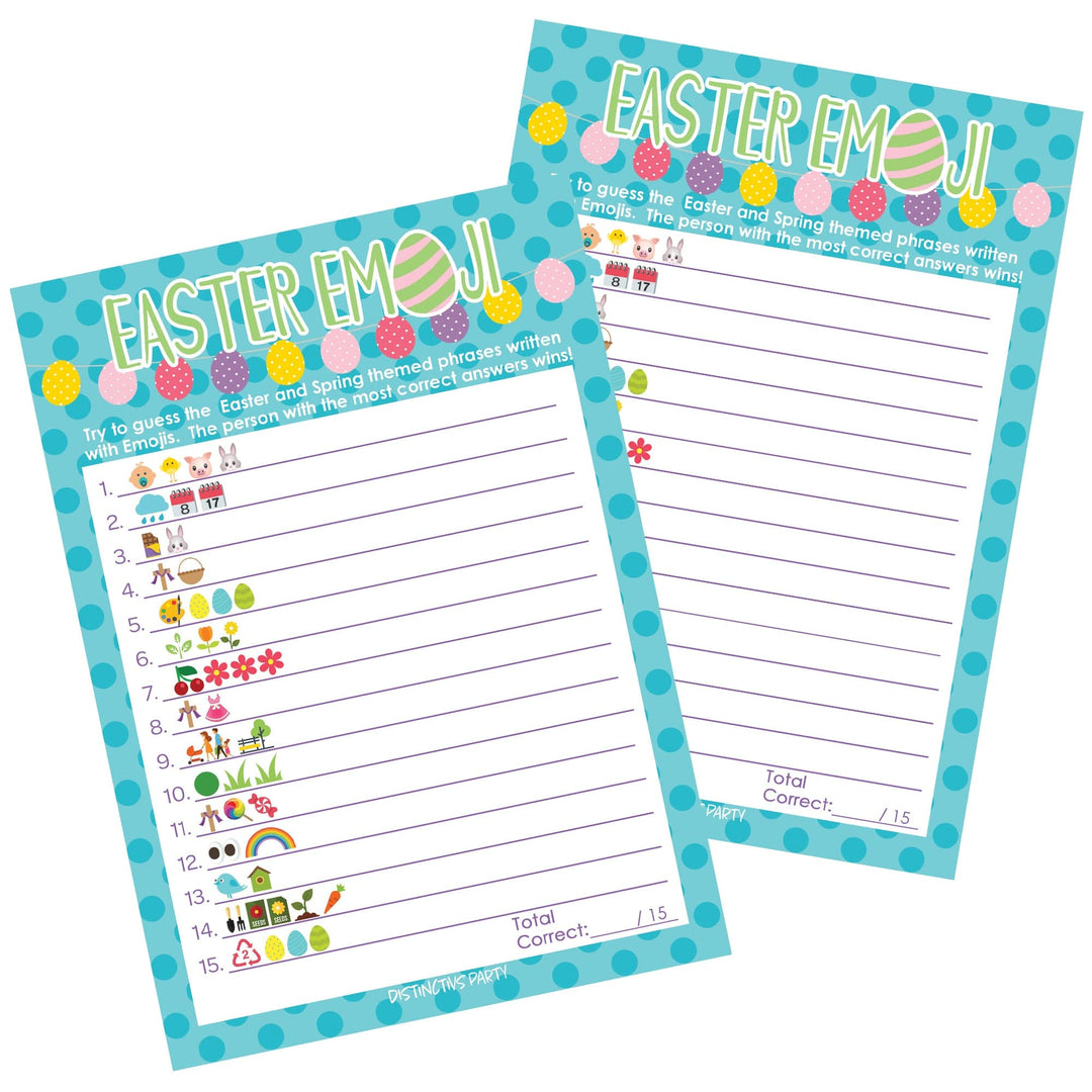 Este juego de emojis para la fiesta de Pascua hará que los invitados a la fiesta se rían juntos tratando de encontrar las respuestas. La actividad de la fiesta es un complemento divertido para la búsqueda de huevos de Pascua o el Spring Fling de tu vecindario.
