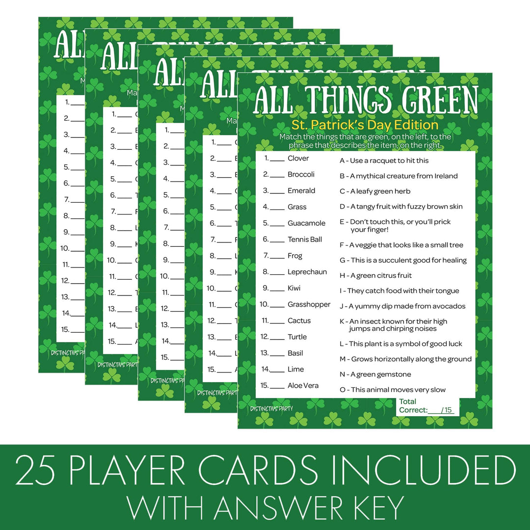 El juego de fiesta en el aula All Things Green del Día de San Patricio es perfecto para un aula de cualquier tamaño. Sus alumnos se lo pasarán en grande jugando al juego de fiesta en el aula All Things Green del Día de San Patricio. Es una manera emocionante de inculcarles el espíritu festivo y animarlos a trabajar juntos para leer y utilizar sus habilidades de combinación.