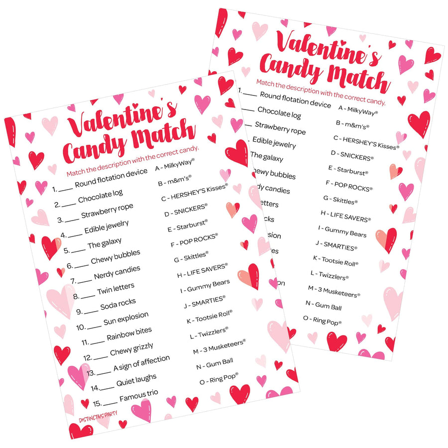 Estos juegos de fiesta en el aula para combinar dulces del día de San Valentín mantendrá a su clase riendo unida y será un complemento divertido para la fiesta de San Valentín en el aula de su estudiante. Relaciona los dulces de San Valentín con su descripción. ¡Juega un juego de carrera para ganar y ver quién puede adivinarlos más rápido!