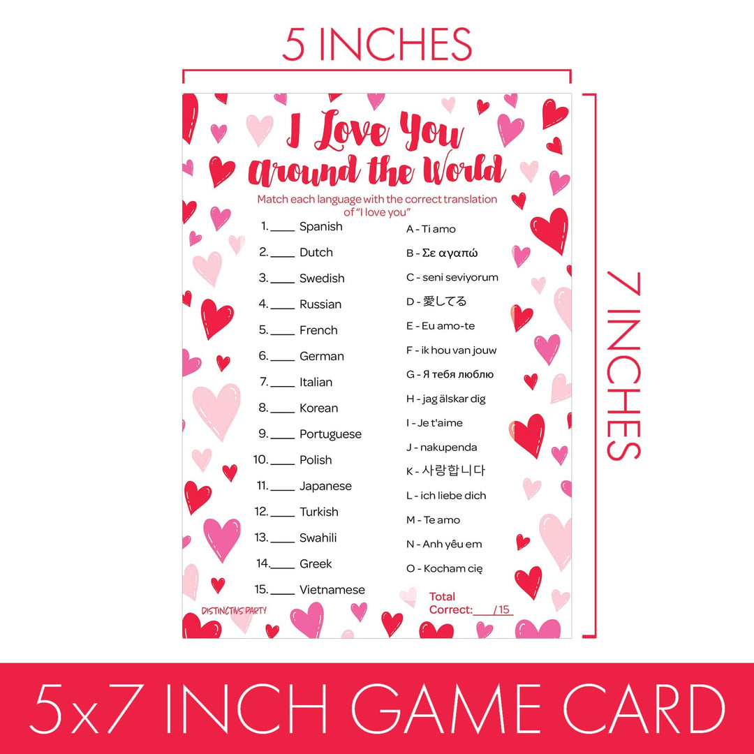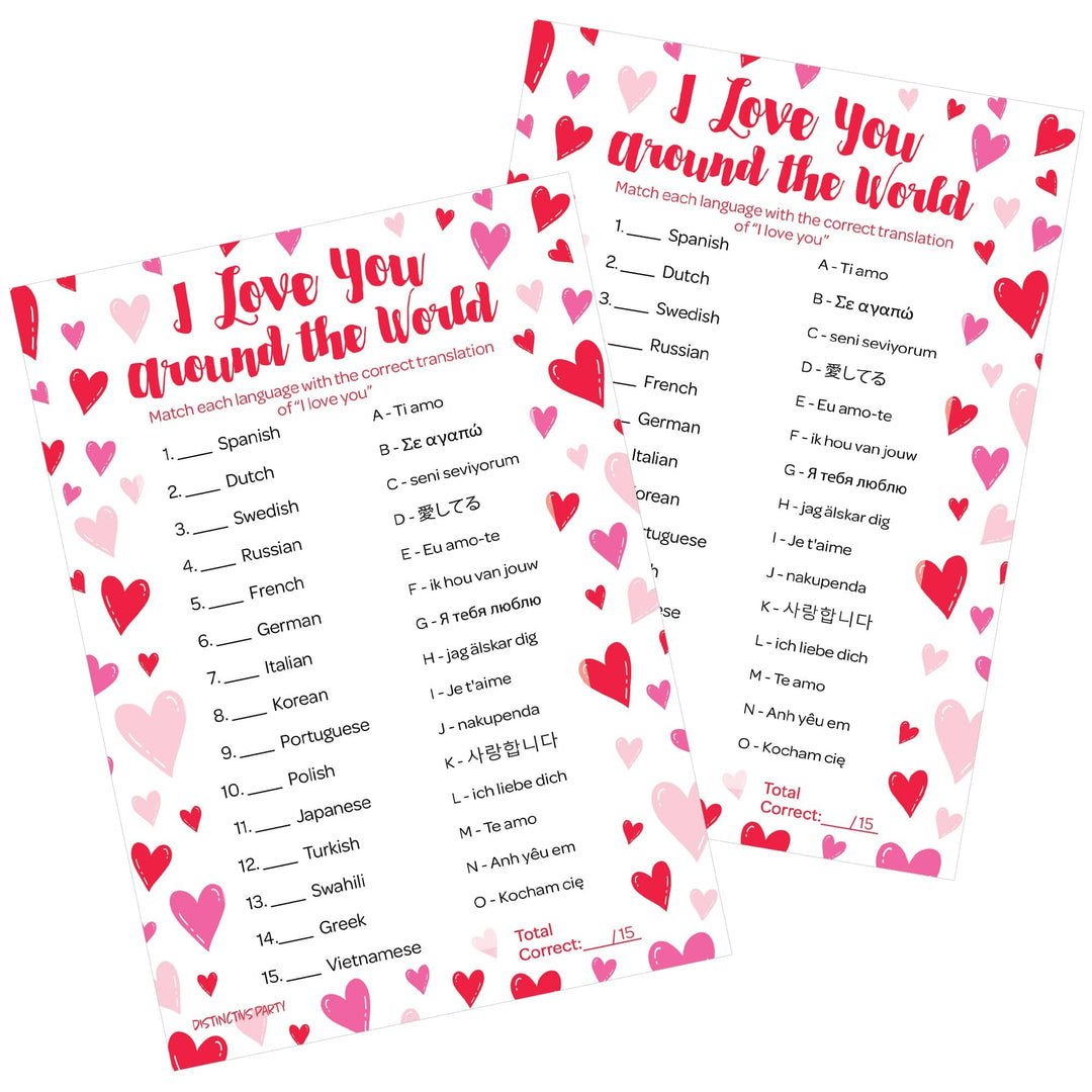 Agregue este juego de fiesta en el aula Te amo en todo el mundo del Día de San Valentín para que el aula de sus hijos siga aprendiendo y divirtiéndose juntos y sea una excelente adición a la fiesta de San Valentín en el aula de su hijo. Con corazones rojos y rosados, esta es la manera perfecta de agregar una actividad divertida y educativa al salón de clases o a cualquier evento temático del Día de San Valentín. Para jugar, configura un cronómetro y haz que los jugadores relacionen los idiomas con las frases del Día de San Valentín. ¡La mayoría de las respuestas correctas ganan!