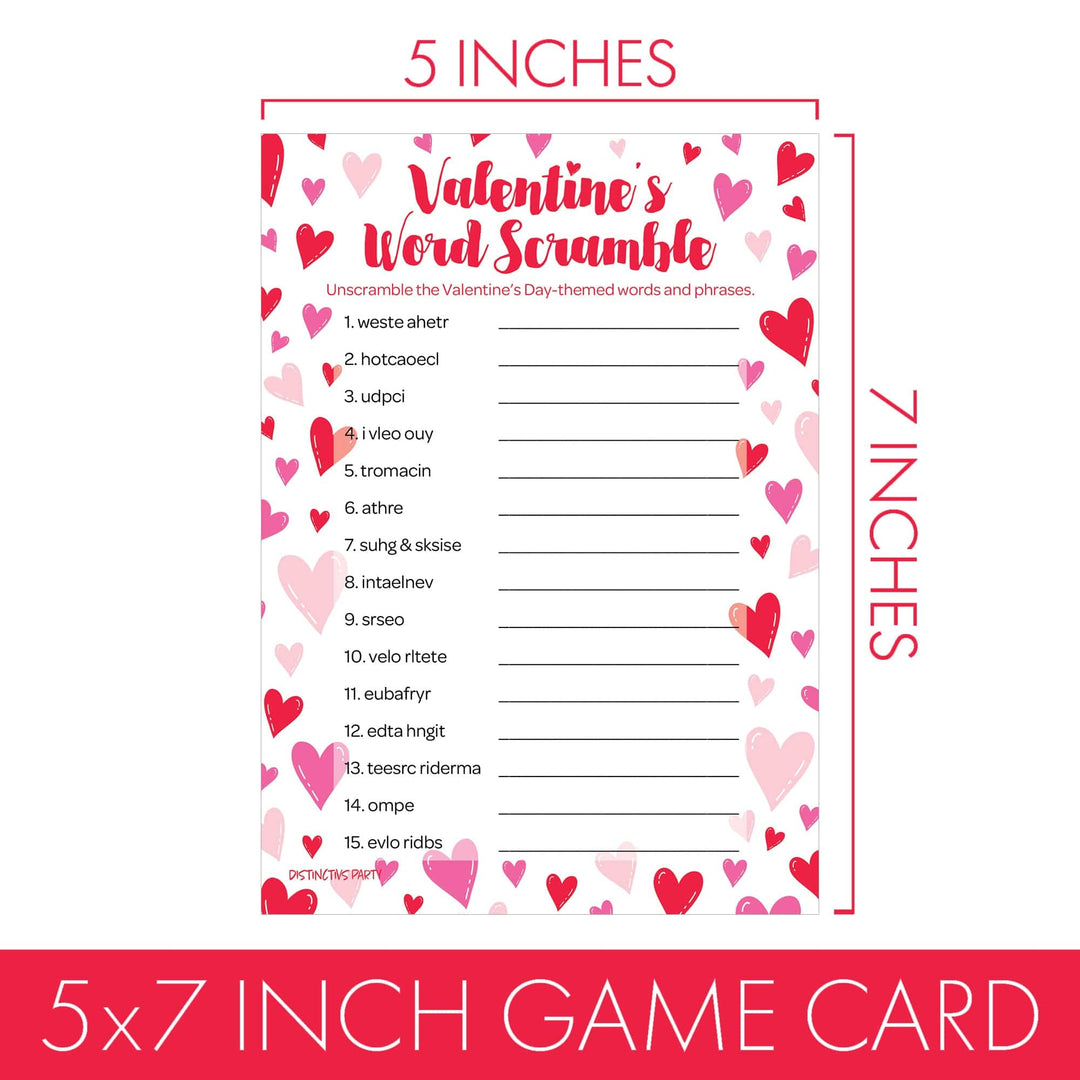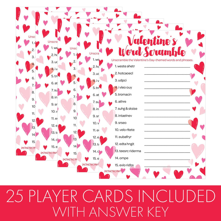 Agregue este juego de fiesta en el aula de Word Scramble del Día de San Valentín para mantener a su clase riéndose unida y ser una adición divertida a la fiesta de San Valentín en el aula de su estudiante. Con corazones de caramelo rojos y rosados, son perfectos para amigos y familiares en cualquier evento temático de San Valentín. Para jugar, intenta descifrar las palabras con el tema del Día de San Valentín y juega un juego de carrera para ganar para ver quién puede descifrar las palabras más rápido.