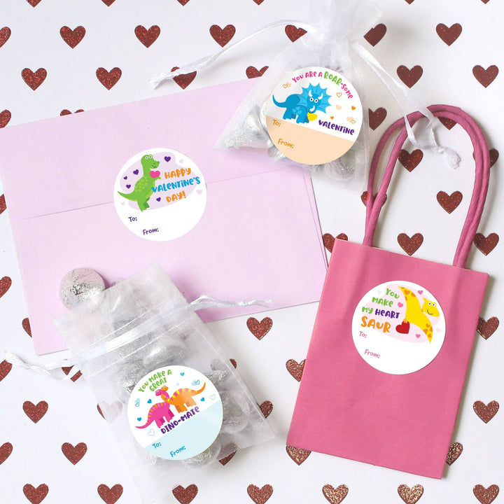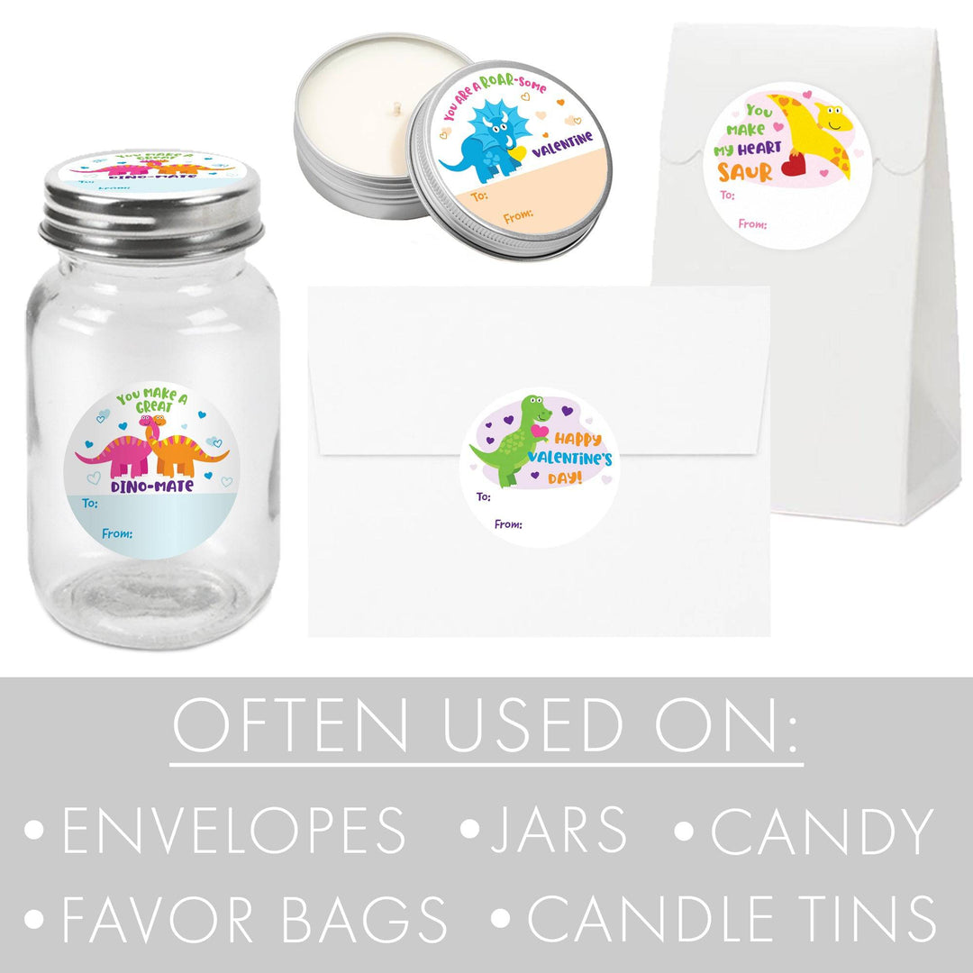 Agregue estas etiquetas de San Valentín de dinosaurios para niños a sus suministros para envolver regalos del Día de San Valentín. Ideal para regalar a estudiantes en el aula de la escuela o para un San Valentín secreto. Material de alta calidad diseñado para realzar y complementar el aspecto final de envoltorios, bolsas de regalo, cintas y lazos para regalos de San Valentín. El autoadhesivo fuerte funciona bien en dulces, bolsas de golosinas, regalos y vasos de puré de manzana.
