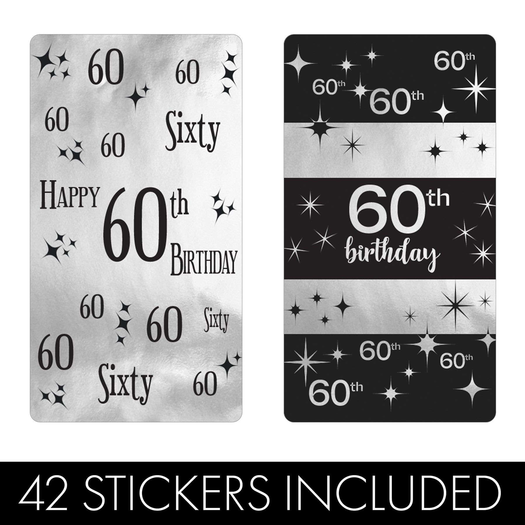 Estos negros y Las pegatinas plateadas para regalos de fiesta de cumpleaños número 60 están hechas para envolver alrededor de las barras de caramelo en miniatura de Hershey's®.