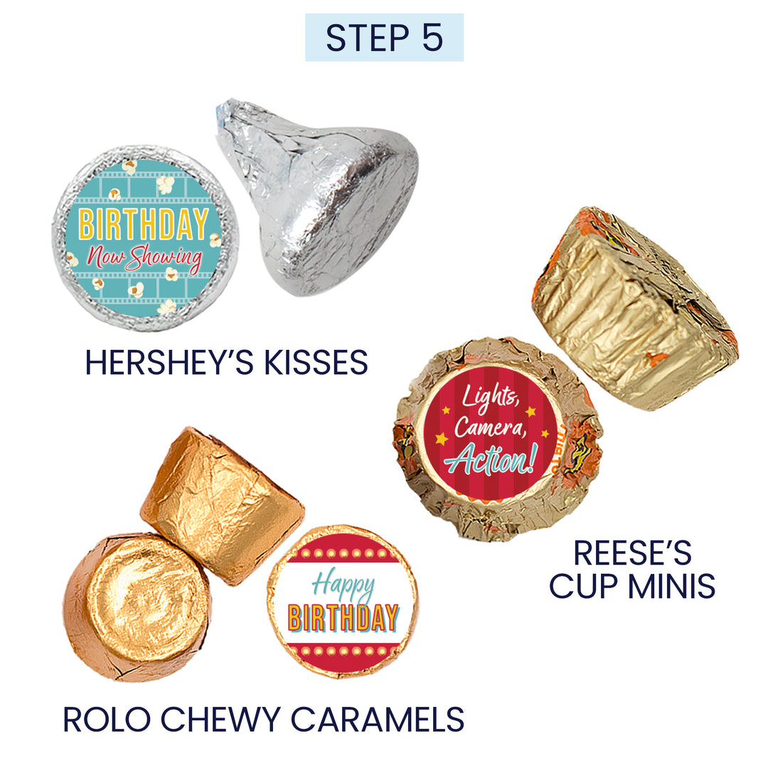 Position the sticker onto the candy, making sure it's aligned in the center. Gently apply light pressure and smooth any creases or air bubbles. This attention to detail will elevate your candies, transforming them into delightful, personalized treats that perfectly complement your event's theme or occasion.