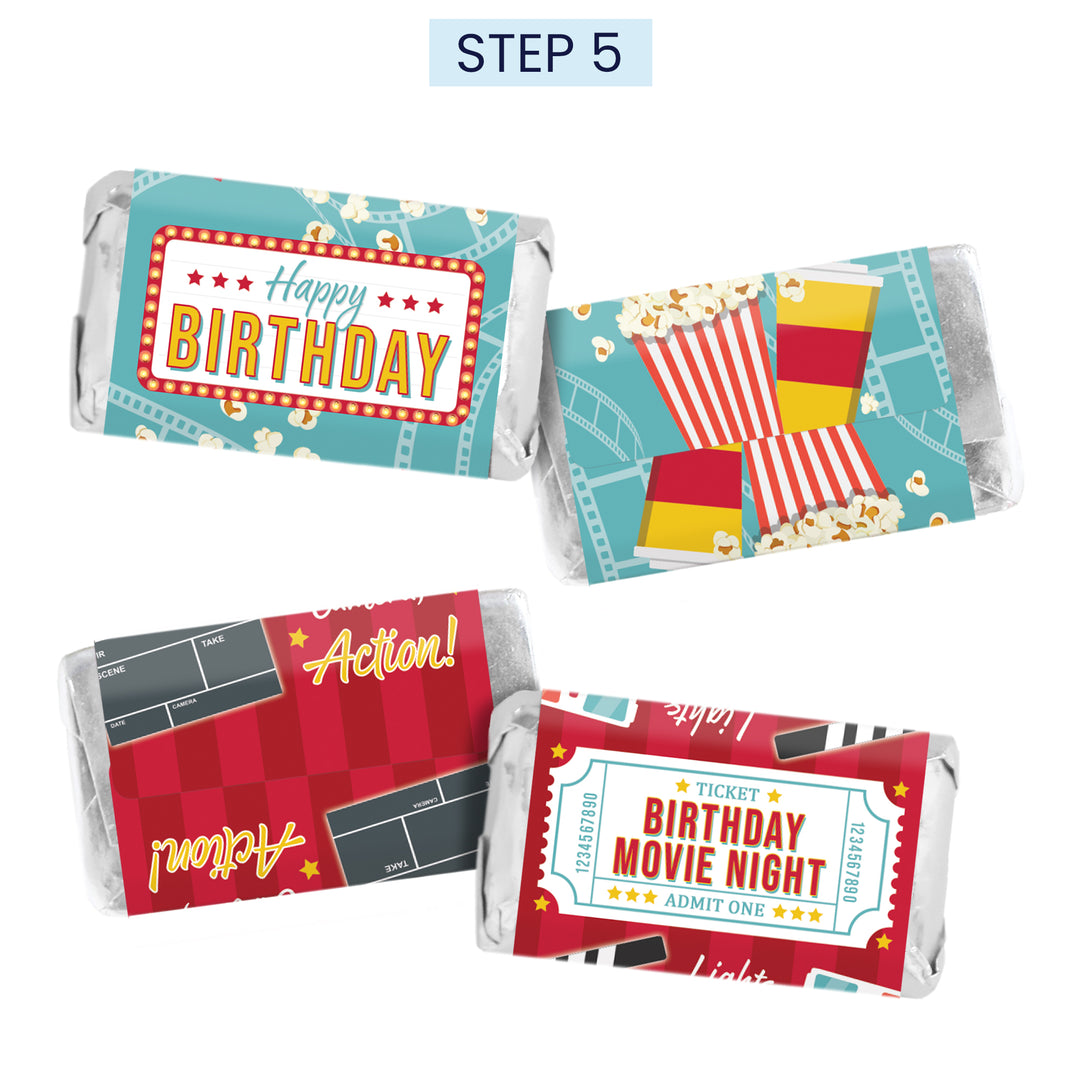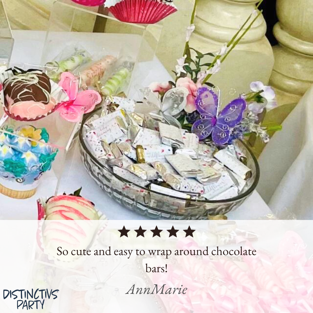 After adding the stickers, showcase these delightful treats as charming elements in your party decor. Arrange them creatively on table scatters, candy bowls, or any other display that elevates the overall look of your celebration. Your custom candy bars will not only satisfy sweet cravings but also contribute a unique touch to the event's ambiance.