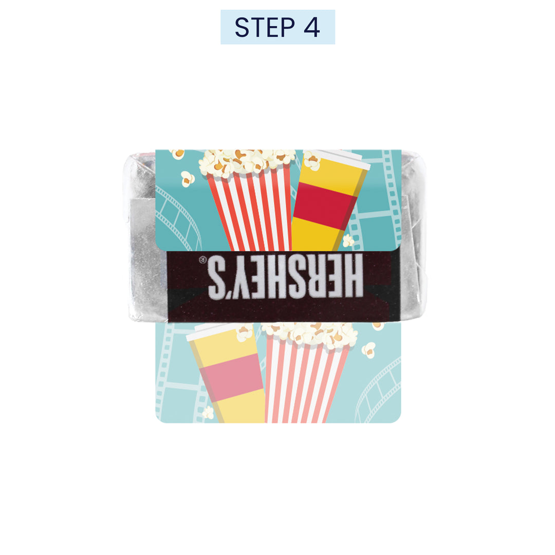 When applying the sticker wrapper to the Miniature's® candy bar, tackle one side at a time. As you wrap the second side, there will be a slight overlap. This will create a polished appearance, transforming your Miniature's® candy bars into charming and customized delights for your event.