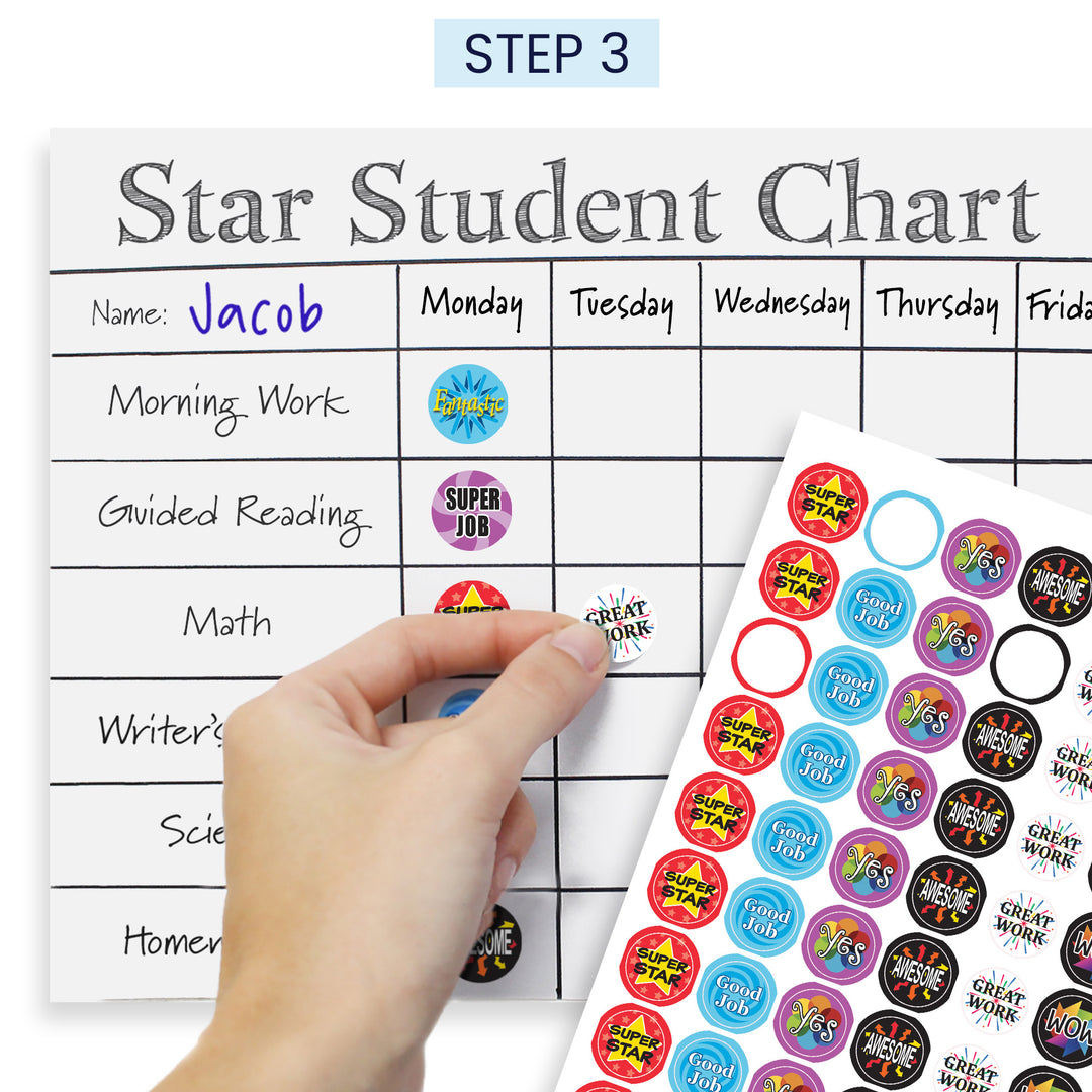 Place the sticker on the reward chart grid for a visually rewarding experience. The small size is perfect for marking progress and achievements in each designated grid space. Whether it's academic accomplishments, good behavior, or any other milestones, these stickers add a touch of celebration to the reward chart. This small but impactful gesture encourages positive reinforcement and motivates individuals to reach their goals, fostering a sense of accomplishment and pride.