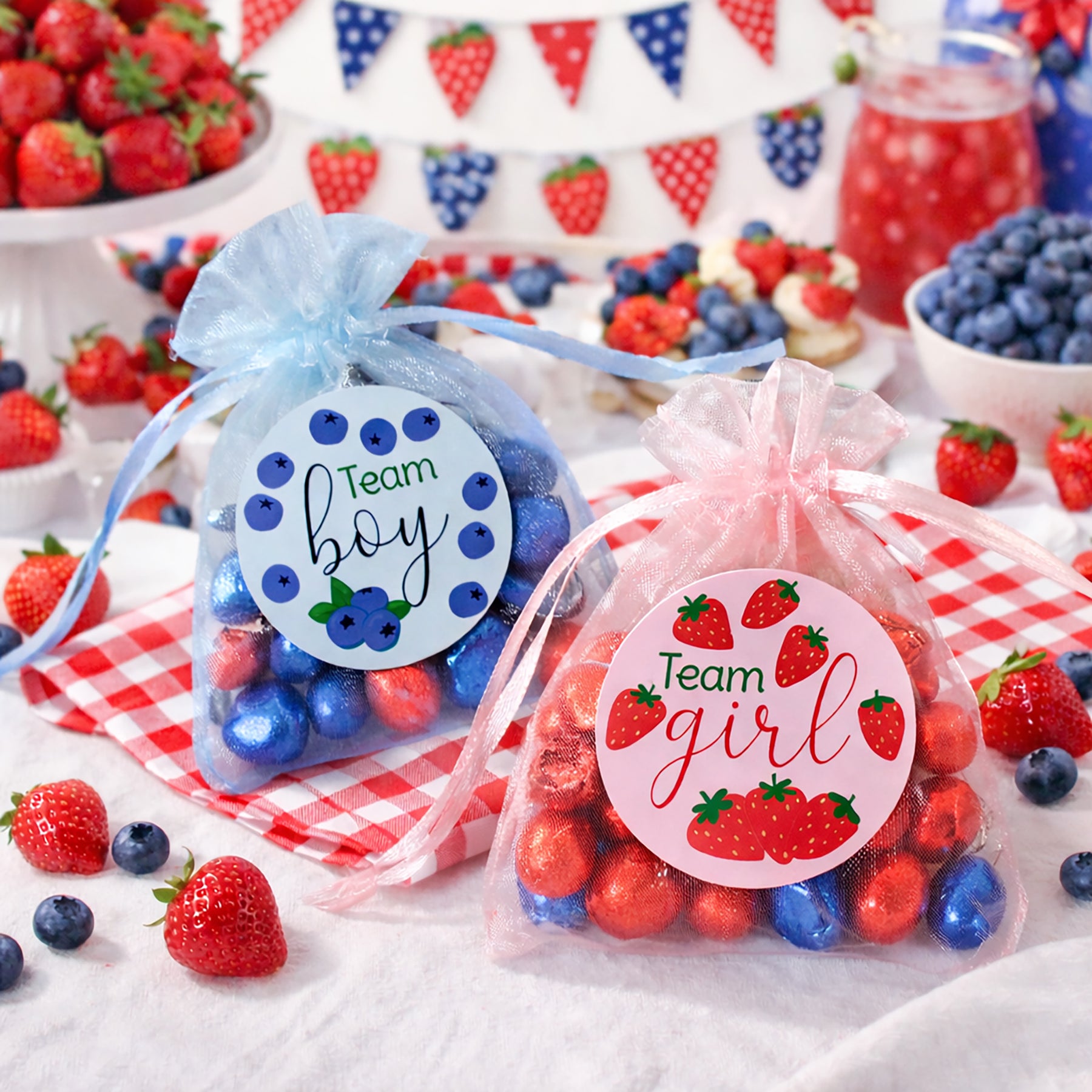 Proudly made in the USA, these Berry Sweet gender reveal stickers are crafted with care and designed to coordinate seamlessly with strawberry and blueberry party décor. Sweet, simple, and full of charm - just like the little one you’re celebrating.
