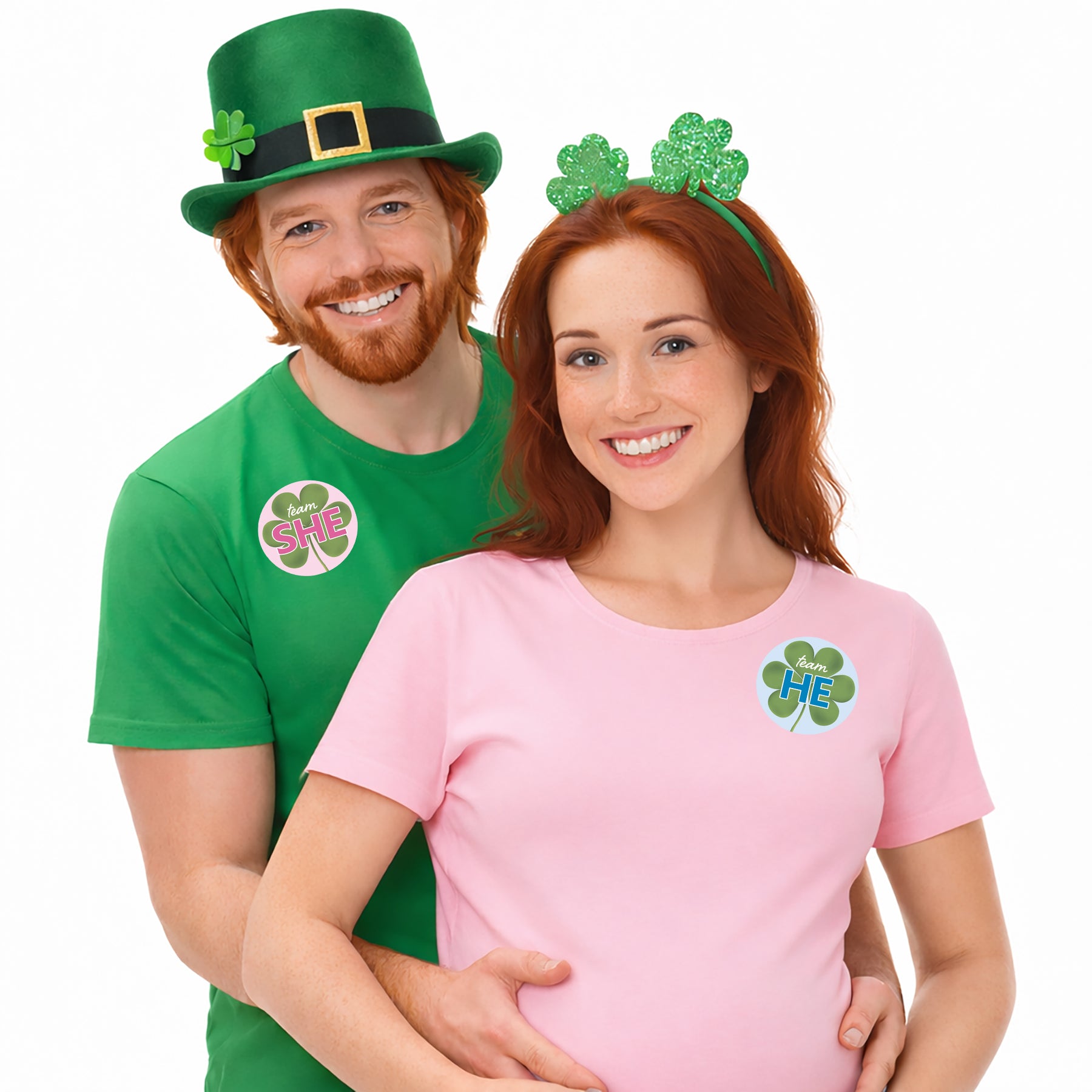 What will lucky charm be? Add these What Will Our Lucky Charm Be St. Patrick's Day Gender Reveal Stickers to your St. Patrick’s Day gender reveal supplies and decorations and let guests vote Team He or Team She. Featuring blue and pink backgrounds and green four leaf clovers, these are the perfect He or She guessing game or party favor labels for guests at any March gender reveal.